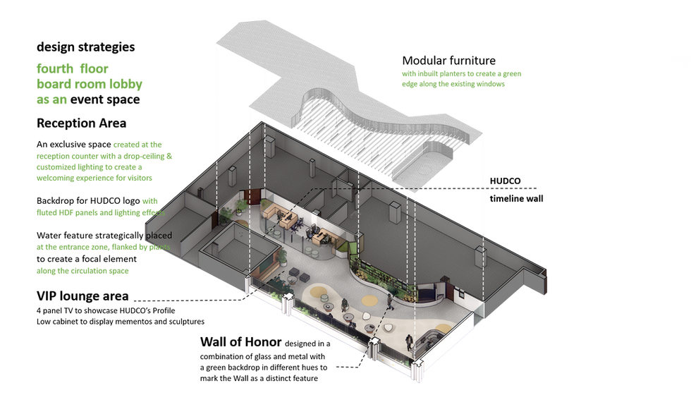Second Prize for Architectural Design Competition for Interior Refurbishment of HUDCO Headquarters in Delhi