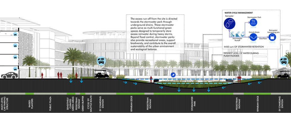 The SITE comes under Business gate land use and is surrounded by different type of land uses. The site being close to the Knowledge & Innovation District, Al Rusail Industrial Estate and Burj Al Sahwa TOD makes it a prime spot for a vibrant innovation ecosystem. Given its proximity to these areas it will establish knowledge clusters and enhance the innovation park's attractiveness for research development.